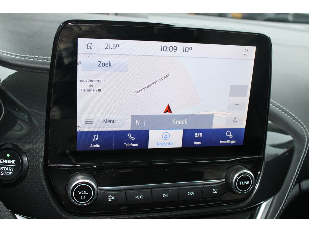 Ook achter de auto geen verrassingen bij het inparkeren. Daarvoor zorgt de achteruitrijcamera. Adaptive cruise control houdt de ingestelde snelheid vast en houdt automatisch afstand tot uw voorligger. Deze Ford Fiesta is voorzien van remote services. Via uw smartphone bedient u diverse functies ook op afstand en krijgt u informatie over de status van uw auto. Sublaag en tophoog… en alles daartussenin! Het high performance audiosysteem kan elke frequentie moeiteloos aan. De automatische airconditioning zorgt voor een behaaglijk klimaat in de auto. Ook dashboard met spraakbediening, full map navigatiesysteem, DAB ontvangst, regensensor, keyless entry en automatisch dimmende binnenspiegel zijn aan boord.