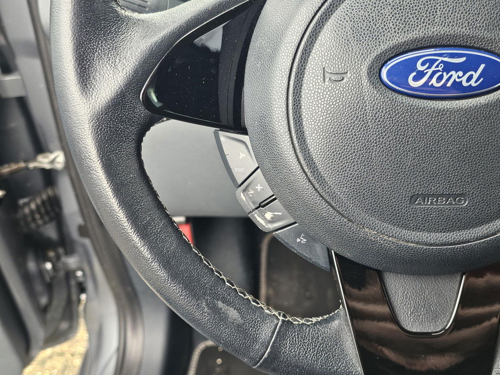 Tijdens de rit bedient u het audiosysteem met de knoppen op het stuur of met uw stem. Automatische airconditioning regelt volautomatisch de temperatuur. U kiest de gewenste temperatuur en het systeem doet de rest. De parkeersensoren vertellen precies hoe ver u kunt gaan. Hoe dichter op een obstakel, hoe sneller de piepjes. Stel de cruise control in op de gewenste snelheid en u rijdt comfortabel en zuinig. Met lederen stuur, centrale deurvergrendeling met afstandsbediening, boordcomputer en lederen versnellingspook is deze Ford helemaal compleet.