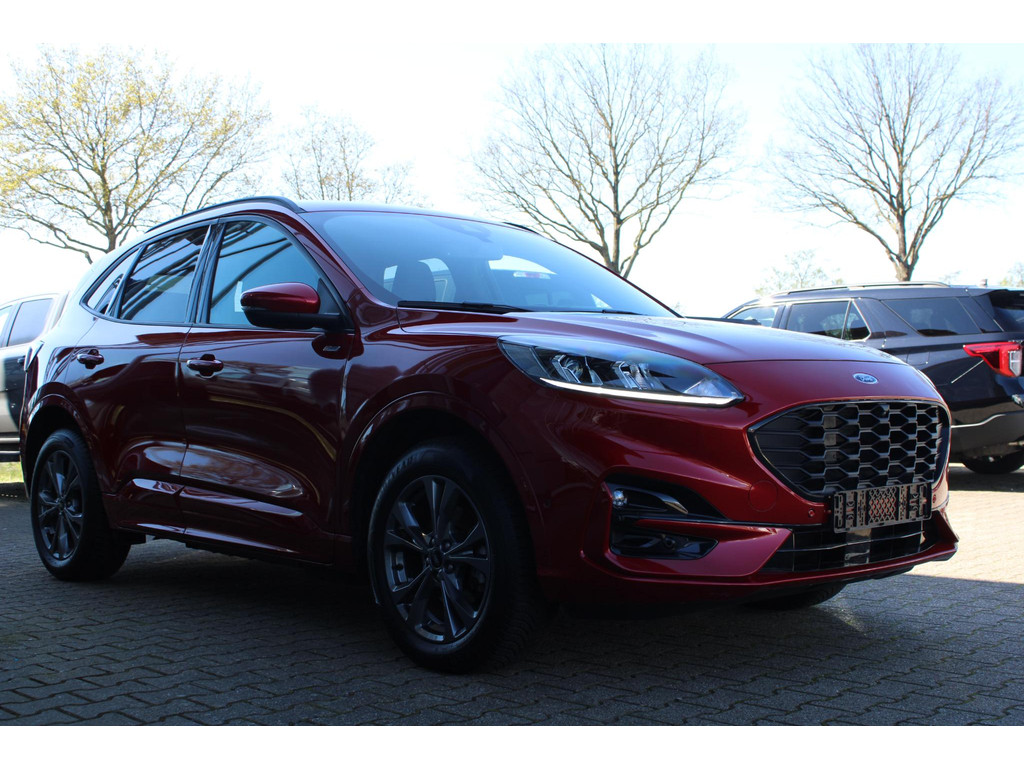 Ford, Go Further. Vooruitgang op wielen. In alle opzichten. Elektrisch rijden: zuinig, goedkoop en schoon. Maar soms net wat beperkt als het gaat om afstand. Daarom heeft deze hybride Ford Kuga zowel een verbrandingsmotor als een elektromotor. Als dat geen perfecte combi is! Deze auto biedt stoelverwarming, een verwarmbare achterbank en een verwarmbaar stuur, waardoor het zelfs op de koudste dagen aangenaam rijden is. U blijft ook in de scherpe bochten goed ondersteund door de fraaie sportstoelen. De bagageruimte is toegankelijk via een comfortverhogende elektrische achterklep. Bij de uitrusting van deze auto horen onder meer 18 inch lichtmetalen velgen, sportonderstel, LED-dagrijverlichting, in delen neerklapbare achterbank, LED-achterlichten en sportuitlaat.