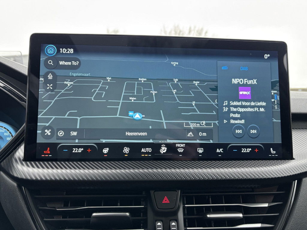 Alle functies voor een veilige en zuinige rit worden overzichtelijk weergegeven op het digitale dashboard. Met de 360 graden camera op deze auto wordt parkeren in smalle parkeerplekken een makkie dankzij het optimale zicht dat het apparaat levert. Adaptive cruise control houdt de ingestelde snelheid vast en houdt automatisch afstand tot uw voorligger. Ingericht op Connected Services, voor een nog veiligere en comfortabelere rit. Sublaag en tophoog… en alles daartussenin! Het high performance audiosysteem kan elke frequentie moeiteloos aan. De uitrusting van deze Ford is met dashboard met spraakbediening, full map navigatiesysteem, kruisend verkeer detectie, automatische airconditioning, draadloos opladen en DAB ontvangst behoorlijk compleet.