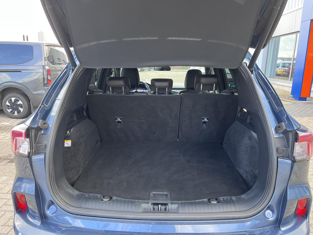 Robuuste wielkasten, grote wielen en een opvallende taillelijn. Deze Ford Kuga heeft de uitstraling van een suv en de binnenruimte van een limousine. Deze hybride auto beschikt over een verbrandingsmotor én een elektromotor. Daardoor rijdt de auto zeer comfortabel en is tegelijk zuinig in het verbruik. Hoogstaande comfortfuncties zoals stoelverwarming, verwarmbare achterbank en een verwarmbaar stuur maken deze auto tot een uitzonderlijke keuze. De sportstoelen houden u en uw bijrijder goed op z’n plek tijdens het accelereren en bij het nemen van scherpe bochten. De elektrische achterklep opent met een druk op de knop, zodat u gemakkelijk toegang heeft tot de bagageruimte. Verder is de Ford uitgerust met: 19 inch lichtmetalen velgen, LED koplampen, sportonderstel, geluidsisolerende ramen, dakspoiler en in delen neerklapbare achterbank.