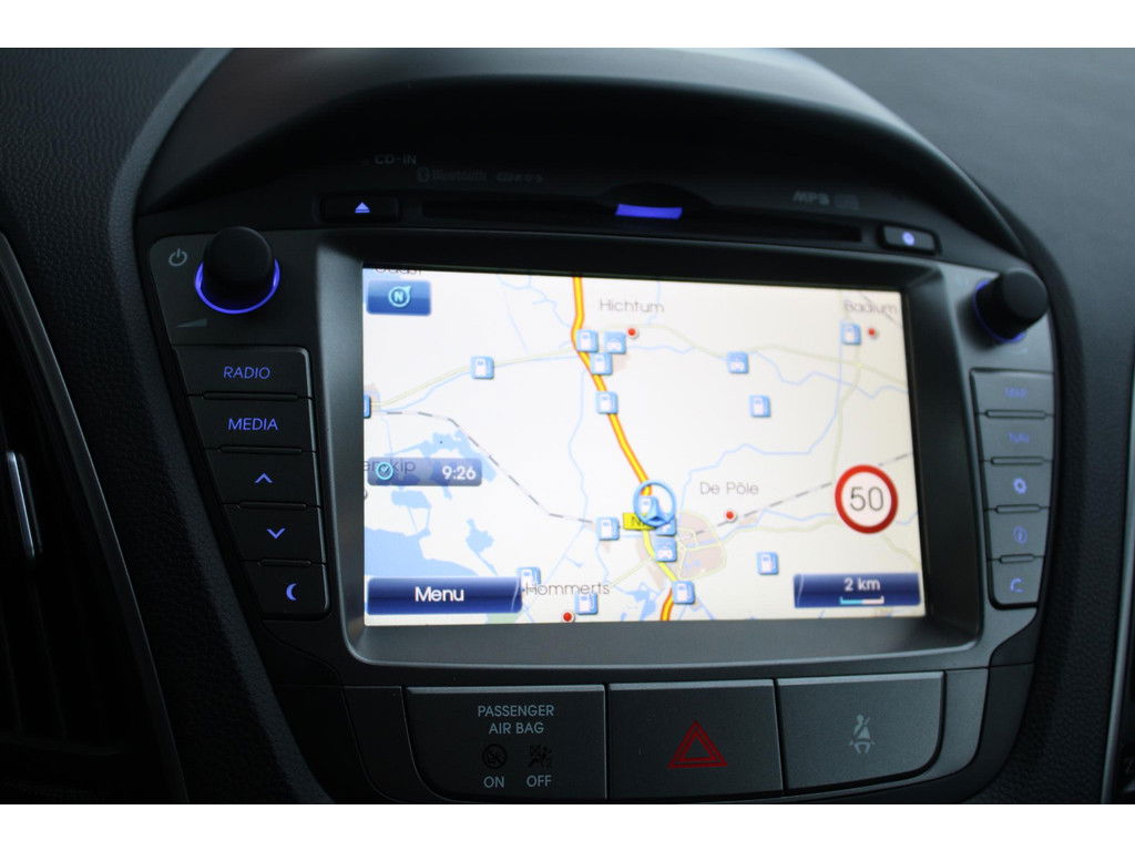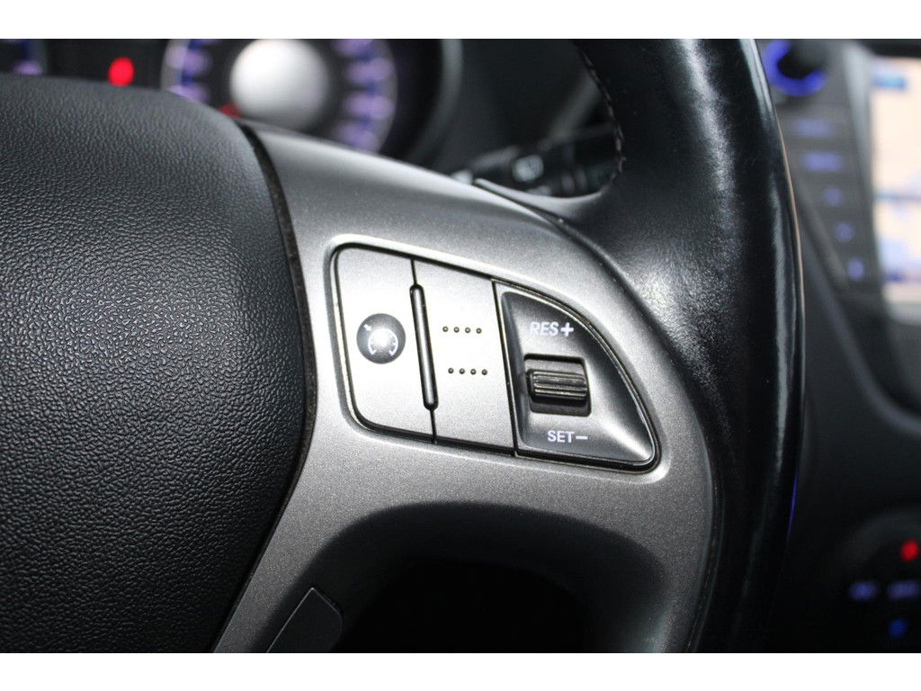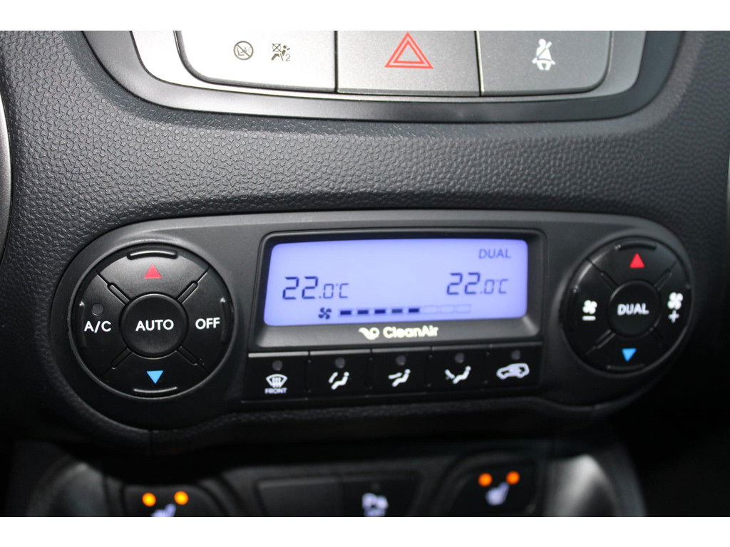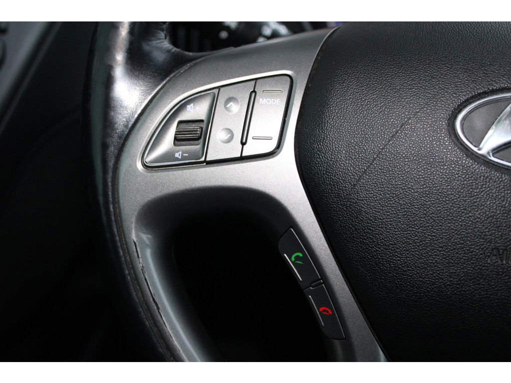 Dankzij de stuurwielbediening van het audiosysteem, kunt u veilig het verkeer in de gaten houden. Electronic climate control regelt volautomatisch de temperatuur. U kiest de gewenste temperatuur en het systeem doet de rest. Parkeerplekken worden er niet ruimer op. Maar met de aanwezige parkeersensoren krijgt u deze Hyundai ix35 zonder problemen op z’n plaats. Achter het stuur van deze Hyundai bent u niet alleen. De auto kijkt als het ware met u mee tijdens de rit. De regensensor schakelt de ruitenwissers in als het nodig is en de automatisch inschakelbare verlichting doet de lichten voor u aan. De cruise control zorgt voor een mooie, gelijkmatige snelheid die u zelf instelt. Dat is relaxt! Ook automatisch dimmende binnenspiegel, lederen stuur en versnellingspook, centrale deurvergrendeling met afstandsbediening, bagage afdekhoes en boordcomputer horen tot de voorzieningen op deze auto.